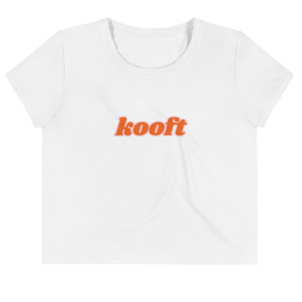 Looking for you next wardrobe favorite? Well, look no further because this crop tee is printed and sewn to fit you just right. To top that off, the original all-over kooft design is definitely worth showing off, so don't hesitate to own one of these tees - they're meant to be adored.